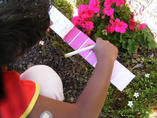 வீட்டிற்கு பெயிண்ட அடிக்க கலர் தேர்ந்தெடுக்க கலர் அட்டைகள் hardware section யில் இருக்கும். ஒரு அட்டையில் ஒரு கலரின் வெவ்வேறு சேடுகள் (Shades..சாரி சேடுக்கு தமிழ் வார்த்தை தெரியவில்லை) இருக்கும். மாண்டிசோரியின் மூன்றாவது கலர் பாக்ஸில் (colour box 3), ஒரு கலரின் வெவ்வேறு சேடுகளை அதன் கலர் அளவு அடிப்படையில் அடுக்க வேண்டும் (from dark to light shades or light to dark shades of the same colour). மாண்டிசோரியின் பாக்ஸ் 3 செய்தோம். முன்பே பள்ளியில் செய்திருக்க வேண்டும். எளிதாக செய்தாள்.